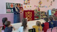 В рамках программы НРК передовым опытом по ознакомлению с культурным наследием Кабардино-Балкарии поделилась Абезехова Ж.Т. – воспитатель, практикующий обучение балкарскому языку. Участники семинара: воспитатели, практикующие обучение родному языку в ДОУ, воспитанники, старшие воспитатели, специалисты РУО.