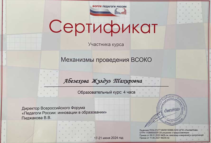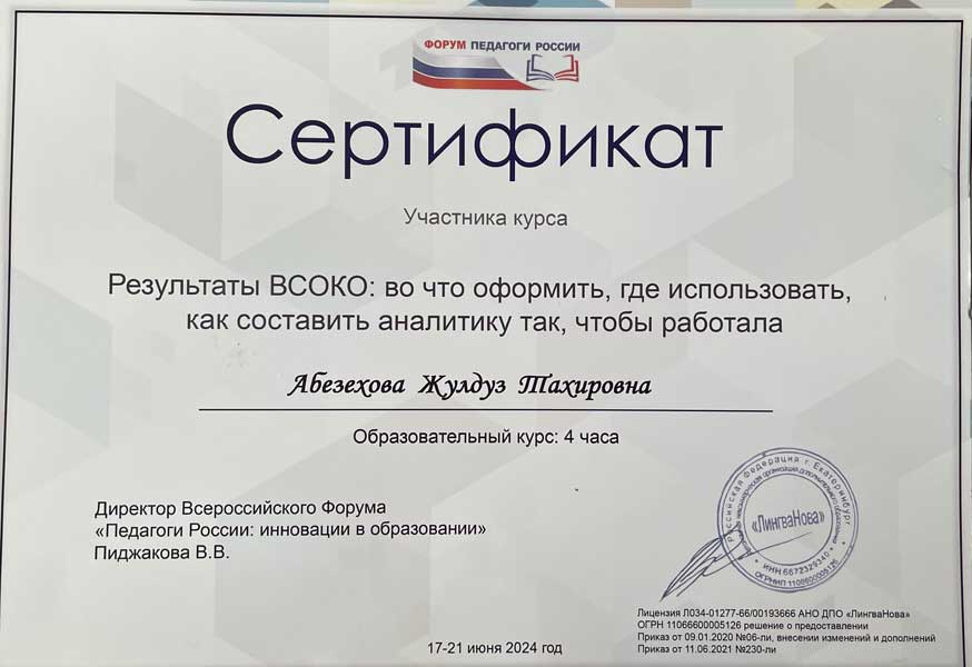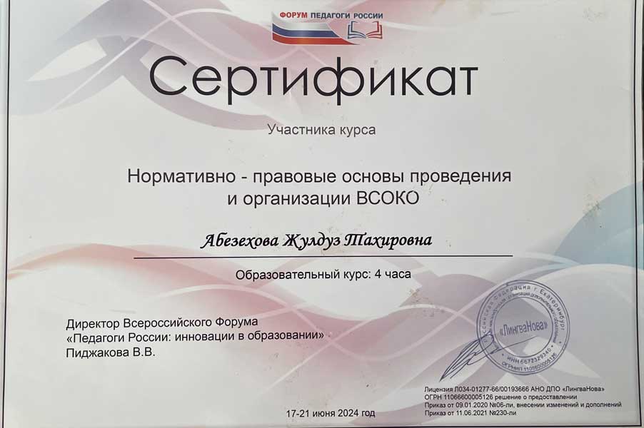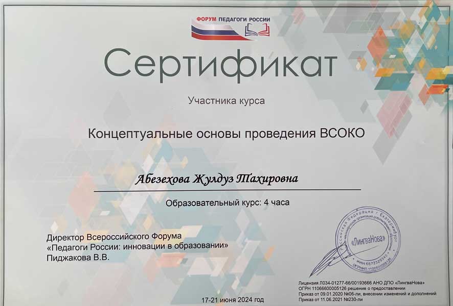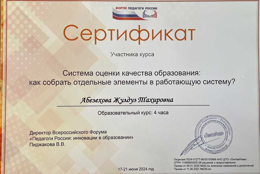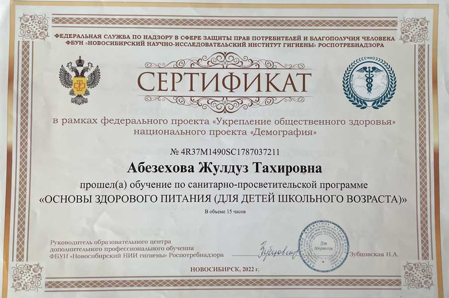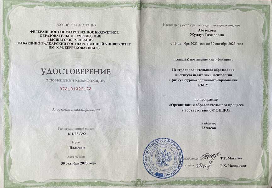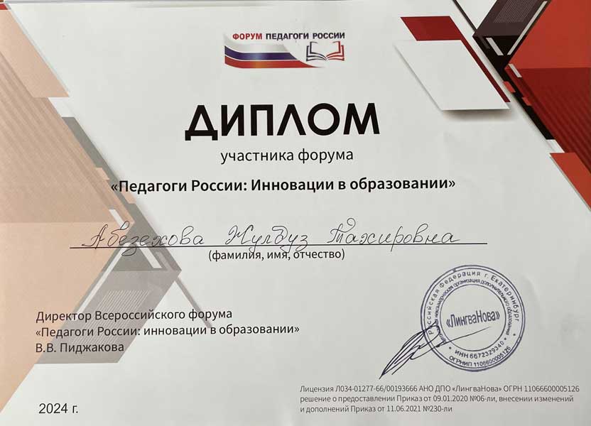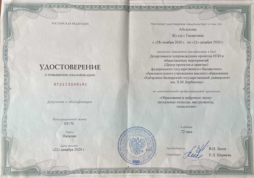 Жулдуз Тахировны Абезеховой